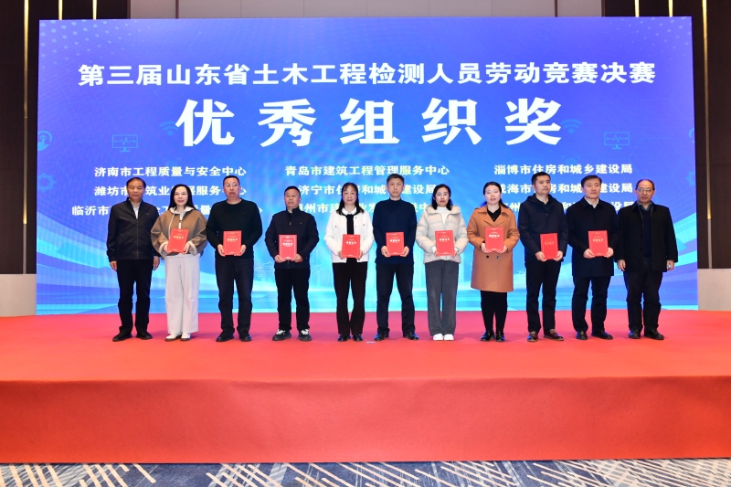 11月25日至26日,由省住房城乡建设厅主办的第三届山东省土木工程检测人员劳动竞赛决赛在济南举行。竞赛设细骨料检测、水泥物理性能检测、钢结构焊缝探伤检测等3个项目,分别决出一等奖2名、二等奖5名、三等奖7名。我市选手沉着应战、奋勇拼搏,在3个竞赛项目中斩获个人三等奖3项,济宁市代表队荣获团体三等奖,济宁市住房和城乡建设局被授予“优秀组织奖”,充分展现了我市土木工程检测队伍高超的专业水准和良好的精神风貌。