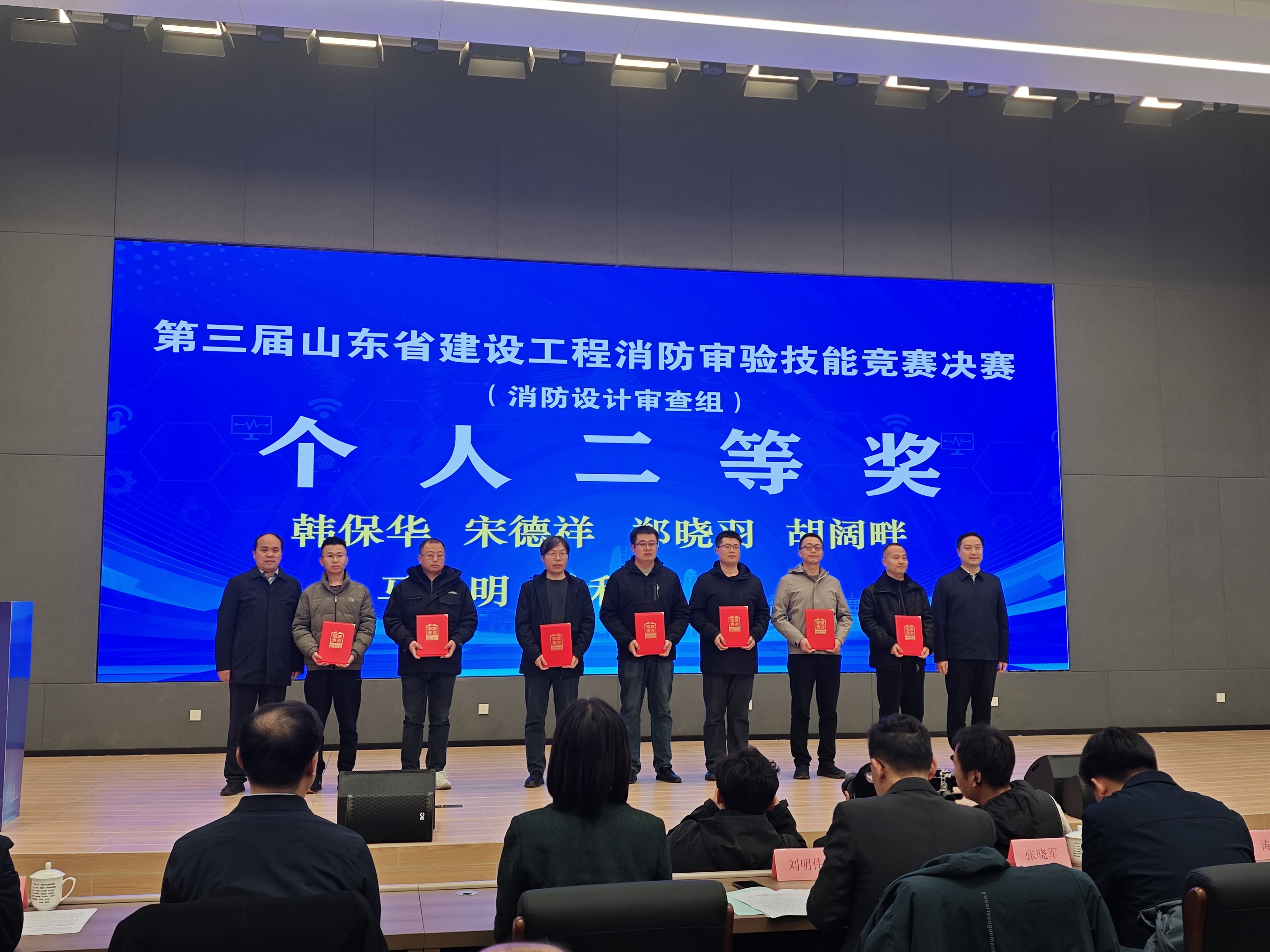 11月26日至28日,第三届山东省建设工程消防审验技能竞赛决赛在青岛举行,来自全省各地市的16支代表队、160名选手同台竞技。济宁市代表队10名参赛选手密切配合、沉着应战,共斩获8项个人奖项,包括二等奖6名、三等奖2名,济宁市代表队获全省第六名、团体三等奖,充分展示了我市消防审验队伍扎实的专业素养与综合实践能力。