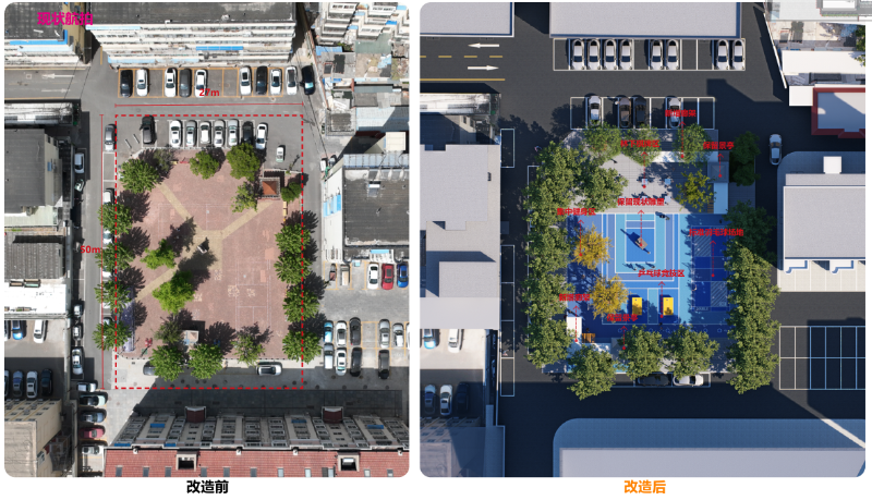 任城区渔山南片区项目(任城区西门大街社区、县前街社区、吉祥社区改造项目)设计区别于传统老旧社区的单一化改造思路,秉持“建设完整社区15分钟生活圈”的设计理念,细节设计上融入运河元素,通过现代手法进行演绎。在保留现有植被,完善无障碍设施的基础上,利用闲置的空地与广场,对室外公共空间进行改造,形成体育运动、休闲健身、儿童游乐、共建花园等全龄化多功能活动空间。在解决雨污管线、电力、通信、燃气、热力、自来水等专业管线问题上进行系统性“重塑”,其核心是“综合化改造”与“智慧化升级”,将各专业管线整体考量,一并建设,施行雨污分流,解决给飞线难题;通过智慧社区平台综合监控与智能分析,实时管理社区停车、高空抛物等问题,实实在在地解决居民生活中的痛点。