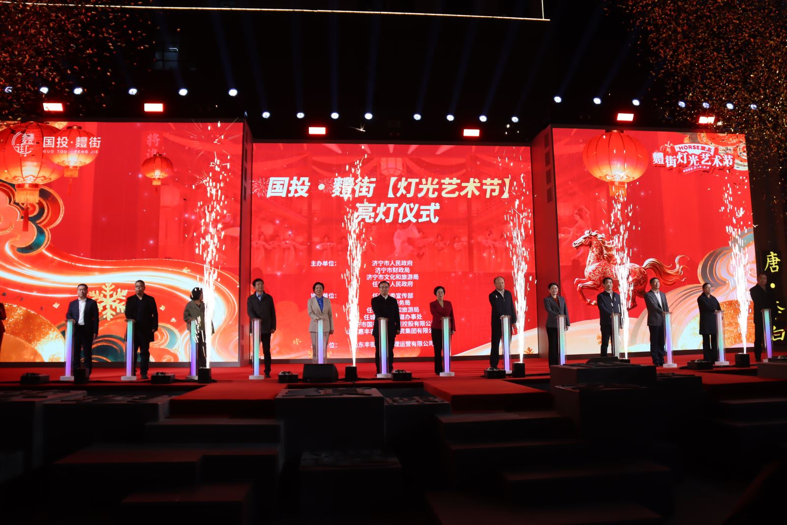 麷街2026灯光艺术节以马年为脉络,以灯光为语言,以非遗为内核,串联起祈福、欢庆、团聚的情感主线,是对传统年俗文化的创新表达,也是济宁夜经济蓬勃发展的生动写照。